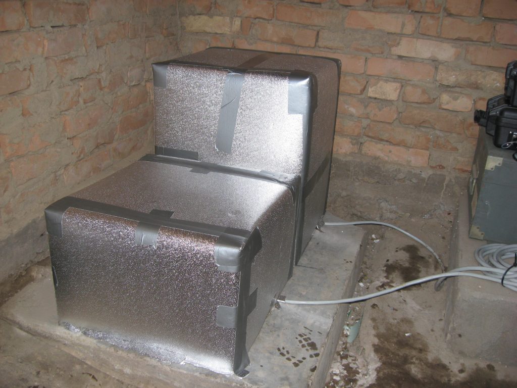 Сейсмикалық бергіштер прибор бункеріндегі тұғырға орнатылған.