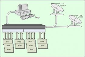 Информация с выносных пунктов сейсмической группы BVA0-BVA4 и BVB5-BVB9 по оптоволоконным каналам поступает в центральный пункт сбора информации. Далее поток информации по спутниковым каналам одновременно подается в Международный Центр Данных в Вену и в Центр данных в г.Алматы. Управление системой осуществляется дистанционнос центрального пункта сбора информации. В Алматы, кроме работы с сейсмическими данными, возможен контроль состояния узлов сейсмической группы.